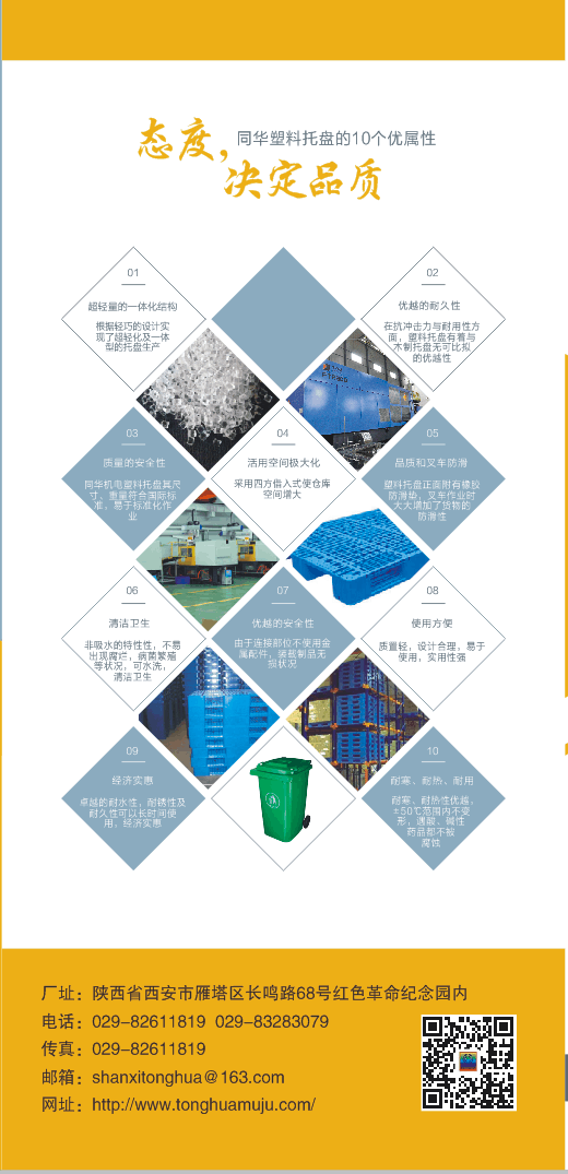 陜西同華機(jī)電有限公司主營(yíng)西安塑料托盤,西安垃圾桶,西安塑料模具加工,西安塑料制品加工 等產(chǎn)品,歡迎前來咨詢!